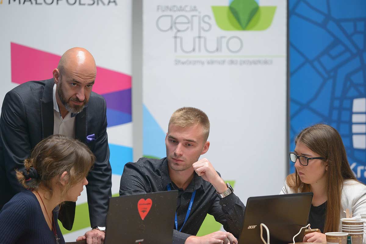 „Kraków znalazł się w gronie ponad 100 miast z całego świata łączących siły, by podjąć działania w sprawie zmiany klimatu” – mówi Joanna Mieszkowicz, prezes Fundacji Aeris Futuro, głównego organizatora Climathon Kraków. W ramach 24-godzinnego hackathonu zjednoczyliśmy aktywistów, studentów, urzędników, przedstawicieli nauki i biznesu, aby wypracować rozwiązania dla ochrony klimatu miasta.
