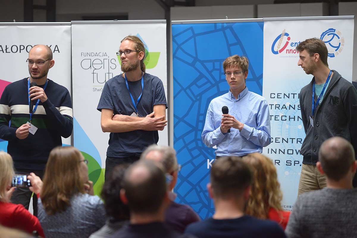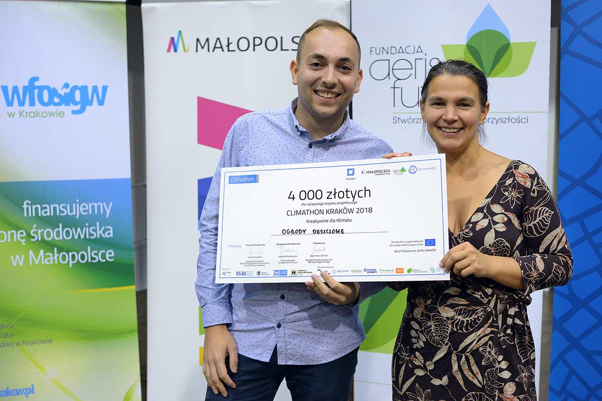 „Ogrody deszczowe” to tytuł projektu, który wygrał w tym roku. Przyszedłem na Climathon i dowiedziałem się, że w wyniku zmian klimatu będziemy mieli coraz mniej wody w Krakowie – mówi Waldemar Boczar, zwycięzca – dlatego postanowiłem wykreować rozwiązanie, by chronić te zmniejszające się zasoby środowiska naturalnego i pomóc mieszkańcom cieszyć się zielenią. I dodaje – chcę stworzyć ogród, broszurę informacyjną z instrukcją budowy ogrodu oraz zaprosić mieszkańców do tworzenia takich miejsc.